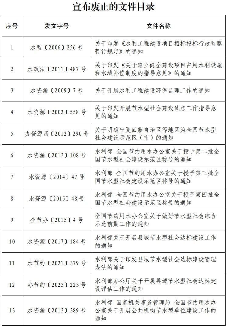 水利部关于废止一批文件的公告