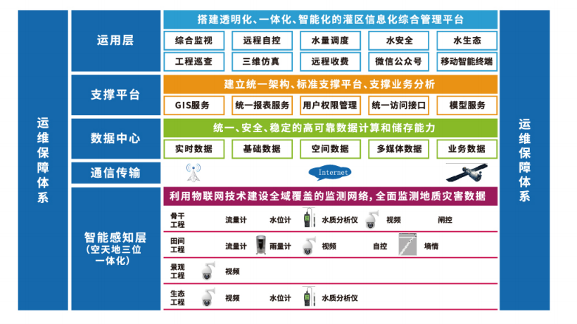 智能感知网络建设以物联感知、航空感知和视频感知为主。主要包括雨情、水情、工情、墒情、水质、工程安全监测,以及智慧水管理系统所需信息。信息采集的布局应覆盖到信息流全过程, 并形成闭环,建成全域覆盖的物联感知网。