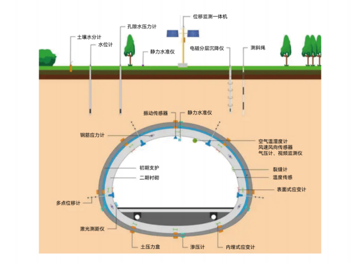 位移、变形监测 | 拱顶沉降 | 激光测距仪、测量机器人 | 施工期、运营期 |