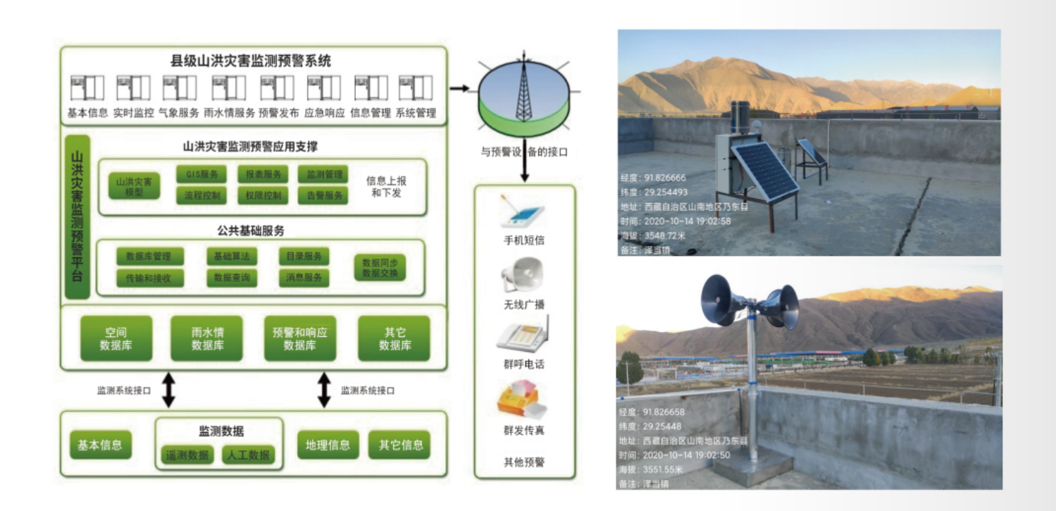 山洪预警系统主要包括水雨情监测系统、无线预警广播系统、视频会商系统组成。为更好地发挥系统的防灾减灾作用,还需建立群测群防的组织体系,加强宣传培训。